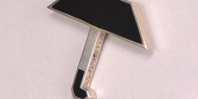 Casil makes silver geometric jewelry. We have two types of Casil abstract silver jewelry. We have nonsensical purely abstract silver jewelry shapes and more iconic, abstract silver jewelry. Casil Icons are representations of real things such as a pencil or palm tree. Abstracts are simply that. Casil abstract silver jewelry was forerunner to our more expensive signature lines and our first venture towards strictly geometric design. Please take a look at similar designs set with precious gemstones in our Cajuel Geomatrix collection. Our symmetrical silver jewelry patterns are based on the Cajuel Inverted Gem Shape and Starflake patterns, which dictate straight lines and angles of 90 and 45 degrees. . Materially, Casil Abstracta is silver enamel jewelry. Many of our abstract silver jewelry models are available in plain polished .925 silver, but most are silver enamel jewelry. Brightly colored enamel is what really makes our abstract silver geometric jewelry stand out. Ours is the best, hand applied torch fired vitreous enamel, versus the all too common sloppy kiln fired glass or epoxy resin. A lot of that cheap enamel is done overseas. Ours is good old fashioned real glass enamel and everything.
