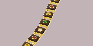 Ruby, diamond, emerald sapphire and onyx 18k yellow gold unisex bracelet